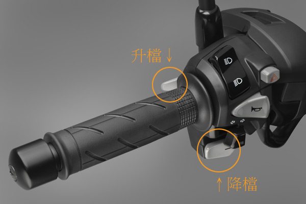 由於配置DCT雙離合器變速箱,因此Honda CTX700N左側把手並沒有離合器拉柄,若在排入D檔或S檔行駛的同時按下升檔、或降檔按鍵,車輛便切換為手動變速模式。