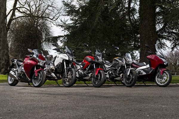 新成員CTX700N除外,Honda旗下現有VFR1200F、Crosstourer、NC750S、NC750X、與Integra(左至右)等五款車型配置DCT雙離合器變速箱。