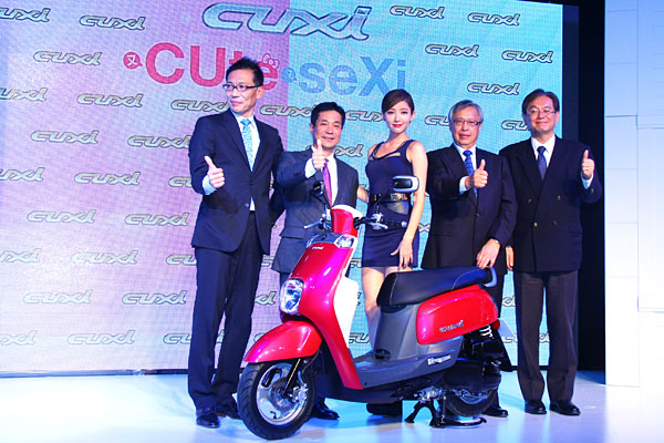 全新CUXI 115代言人郭雪芙於發表會現場與Yamaha代表一同合影。