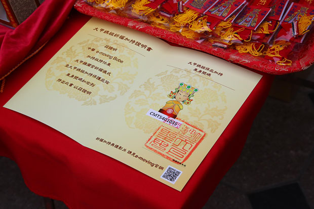 大甲鎮瀾宮也貼心地準備與本次合作的e-moving Bobe加持版祈福證書。