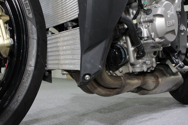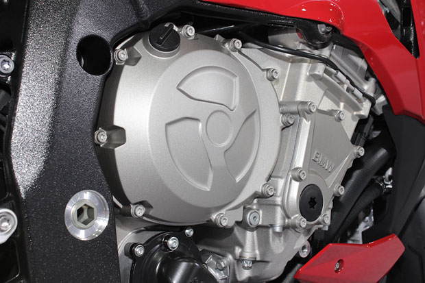 S 1000 R搭載水冷DOHC並列四缸引擎本體,經過針對凸輪軸角度設計更動,並縮短汽門揚程時間,常用轉速域下降2000rpm之後,最大馬力為160hp/11000rpm,峰值扭力則為112Nm/9250rpm。