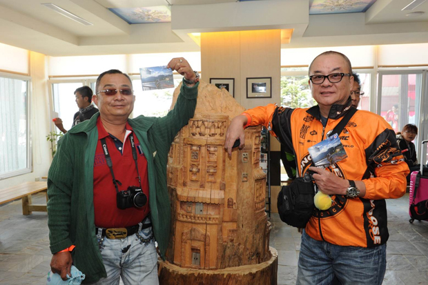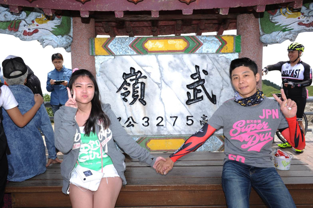 車主成功登上武嶺,在武嶺碑上留念。