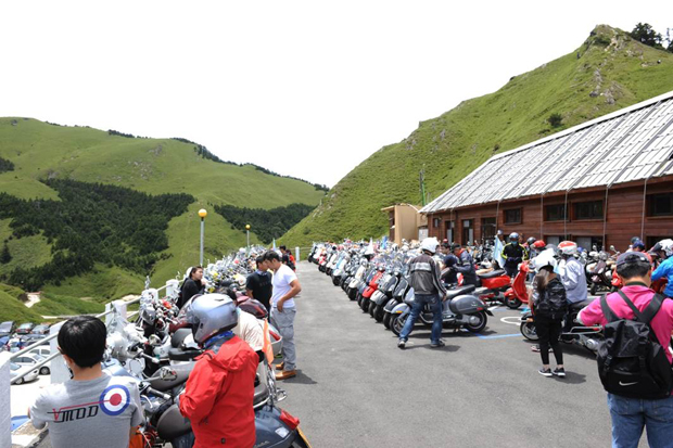 Vespa年度的「合歡山武嶺高峰會」活動,自去年舉辦以來,活動口碑極佳,迴響反應熱烈,一直是Vespa車主最嚮往與期待的會師活動之一,今年更有許多新血車主共同加入車隊。7月20日的清晨六點,中部的車友們便集結在Vespa台中旗艦店,綁好旗繩,整裝待發,滿懷著挑戰武嶺的悸動心情,浩浩蕩蕩地騎乘著Vespa前往合歡山!除了中部的車友之外,全台來自台北、新竹、彰化、台南、高雄等各地的車隊,在經過騎乘百餘公里路途之後,也都陸陸續續抵達合歡山,所有車隊於7月20日中午在成功挑戰武嶺碑之後,前往松雪樓方向集結,並於合歡山遊客中心前人車集結大合照,268台車整齊並排,場面相當壯觀!