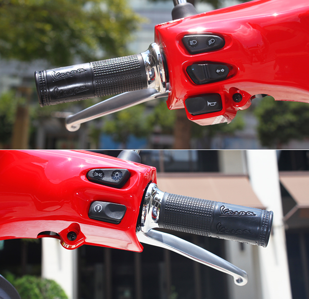 左右把手開關總成與原廠浮雕抗熱握把。