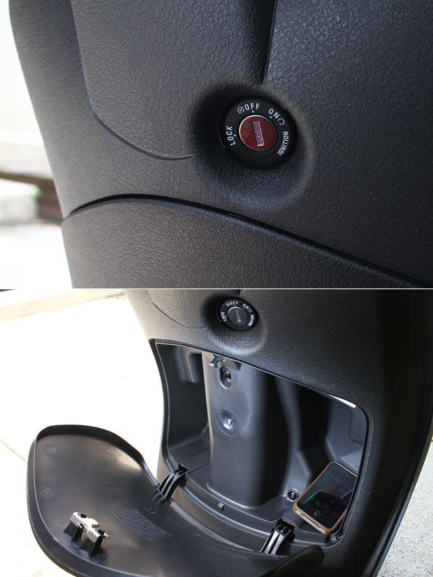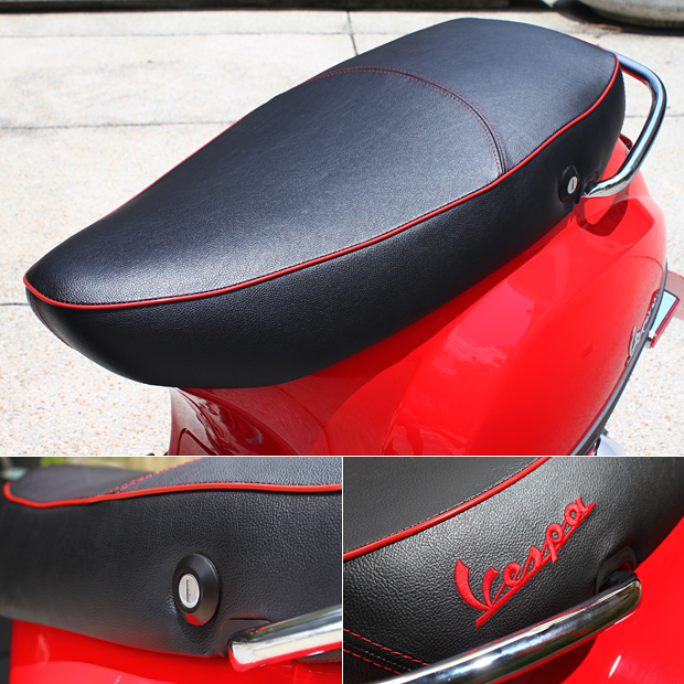 黑色為底紅色飾條的座椅,需要單獨以鑰匙開啟,側邊則有Vespa字樣縫線。