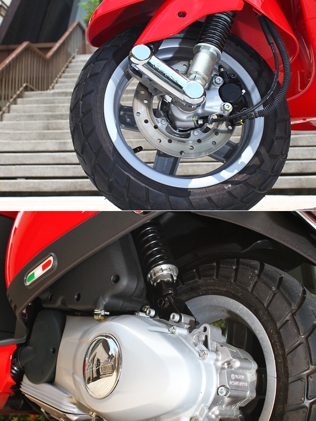 對應環保排放法規,LT 125搭載的是四衝程單汽缸124c.c.的氣冷引擎,CVT無段變速系統的對應,原廠公佈的油耗數據可達38.6km/L,中上水準的經濟性,可惜的稍為影響了騎乘的快意度,較為斯文的動力輸出,一方面受到了全新車款尚待磨合的運轉精緻度影響,一方面力道輸出不若國產125車型的積極進取,平順見長的加速曲線,適合你於市區中愜意巡航,或許這也是原廠的設計原意,市區代步,舒適平順為主,那種加速拼第一的衝鋒陷陣,的確不大像是Vespa走的路線。