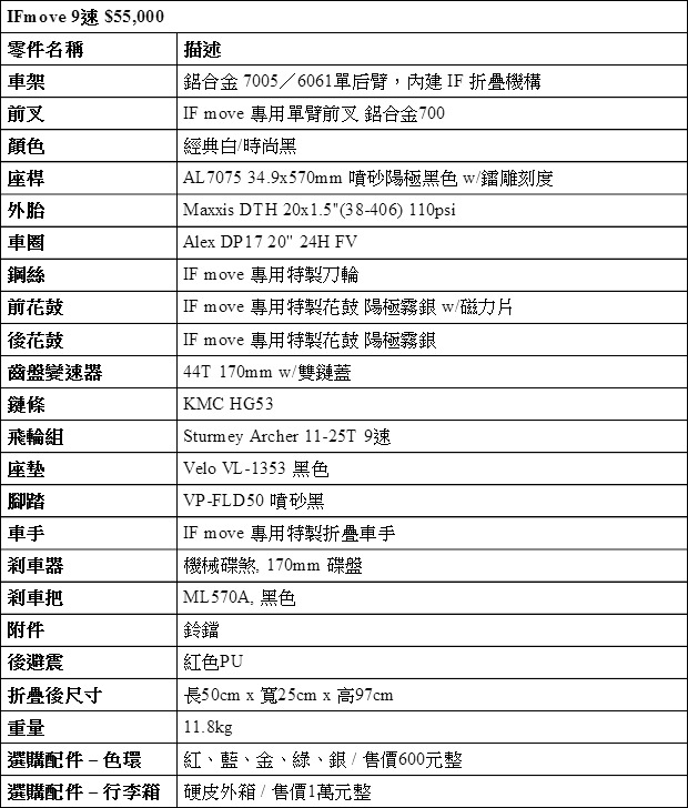 IFmove車款及變速規格: