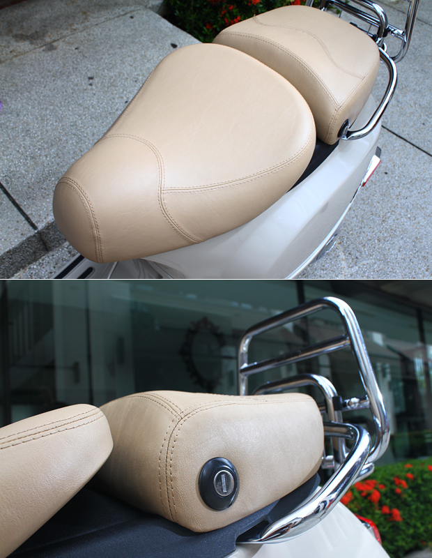 類皮革的分離式坐墊,但開啟方式仍為一體式設計。