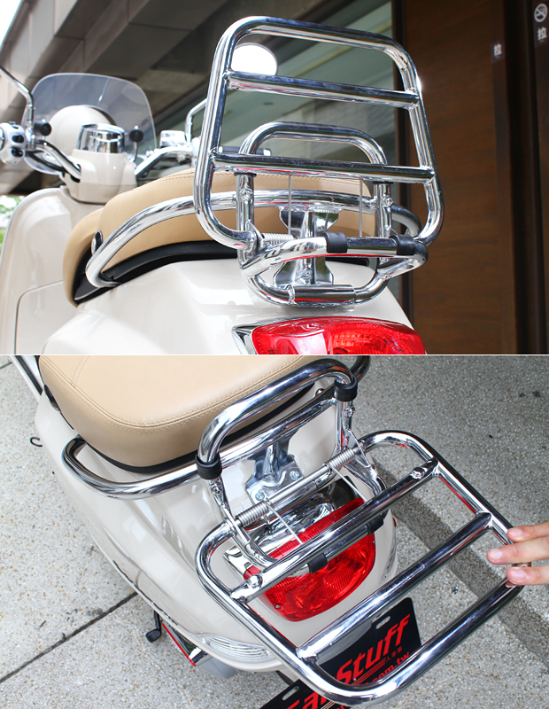 鍍鉻後置物架,也可加裝原廠後箱提升置物容積。