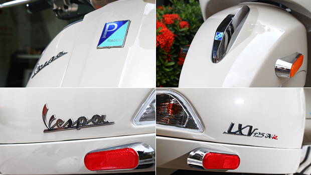 相較LT 125,LXV 125在相似的車身架構上,針對關鍵處取消摩登設計,透過裸把造型的車頭帶領,濃郁的復古意味,於獨立式鍍鉻頭燈、單顆設計圓形儀表、分離座椅與鍍鉻後置物架中清楚呈現,搭配上首度使用的柔光白車色,猶如濃郁奶油的滑潤醇厚,不僅重現1940年代Vespa躍然問世的光芒,更清楚說明LXV車名中那以Vintage作為縮寫的意涵。