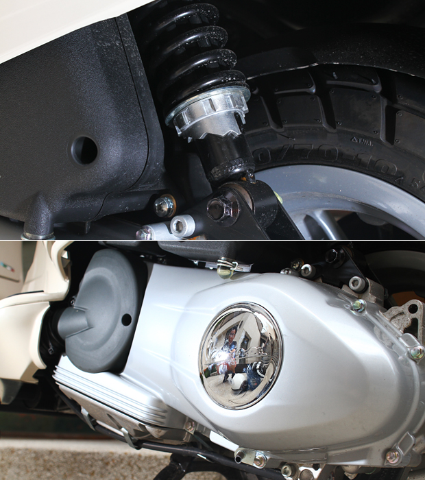 前單側搖臂雙作用液壓減震筒對應臺灣不佳路況有著極高的緩衝性,帶來不俗的舒適感。