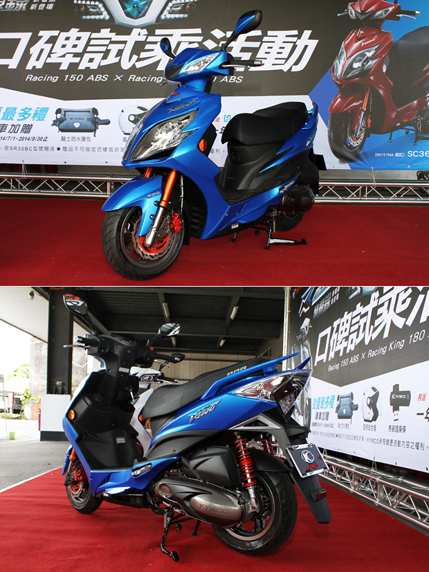 為了提供臺灣消費者更安全的騎乘選擇,Kymco選擇旗下最強調運動性能的Racing車系配備強化,除了維持原有的標準版車系以外,同時針對Racing 150車款,採用德國BOSCH最新9.1代ABS科技,搭配由固定碟升級到浮動碟的碟盤設計,推出Racing 150 ABS車款,此外頂級的Racing 150 ABS Motocam車型,更在ABS此新增配備以外,另外加上了Motocam行車紀錄器功能,於龍頭中央內鍵1080P高階攝影機,可錄製高畫質動態影像,並可透過內建USB插槽輸出影像。配備面的強化以外,2014年式車型也針對動力效能加以強化,導入從G6 開始導入的VACS可變進氣系統,讓引擎效率更加優化。