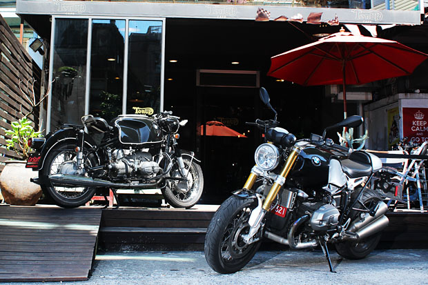 獨立式圓形頭燈的帶領下,R5/2與R nineT有著異曲同工之妙,雖然R nineT造型流線了些,跑格濃厚了點,但那坐墊的比例、為了人體工學揉捏的油箱腰身、還有因為水平對臥雙缸所塑造的陽剛氣息與獨特的車身比例,R nineT就像是從時光機中走出來的R50/2般,經過工業革命後突飛猛進的造車技藝,在不改初衷的平台上針對外型重新敲敲打打,以更科技的材質覆蓋原先的粗獷金屬。就像山頂洞人與現代人般,外貌細膩斯文許多,但那五官與身型的特徵,明眼人都知道,這人類的基因,始終如一。