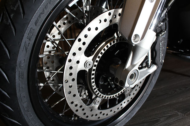 Brembo煞車卡鉗搭配雙前輻動碟盤,制動力道精準且犀利。