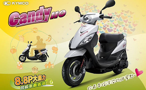 從車名可得知,Candy採取柔性訴求,且為增加市場競爭力,更全面提升生活機能與實用性,如無段差座墊、大容量前置物箱、22公升座墊下置物空間、防脫落置物掛勾等。除了強調的8.8ps馬力輸出外,提供陶碟版與陶鼓版兩煞車規格車型;為提升安全性,Candy提供前後大型化燈具,而330mm長度之前腳踏空間與飛旋式踏版,為母親乘載小朋友的便利設計。