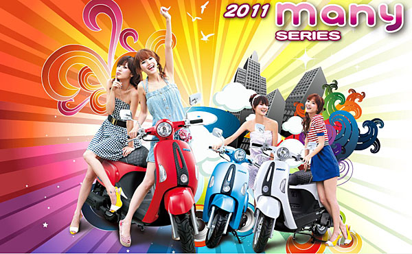 強調時尚魅力的Many車款,除了選擇於東京摩拖車展作為首次亮相舞台外,也邀請在台高人氣的日本女藝人田中千繪作為產品代言人。除了師法Vespa復古風情的造型外,Many提供50c.c.與110c.c.兩種動力規格,也具備鼓煞與碟煞兩種煞車配備選擇,此外,包含LED極光環、鑽石尾燈與織皮紋座椅等,也皆是Many於造形上的獨有風情。