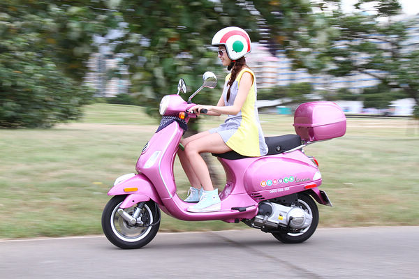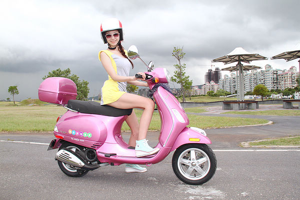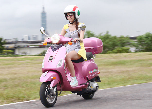 纖細的Spring騎乘VESPA一點都不費力,從臉上的笑容就可知道VESPA多麼令人著迷。