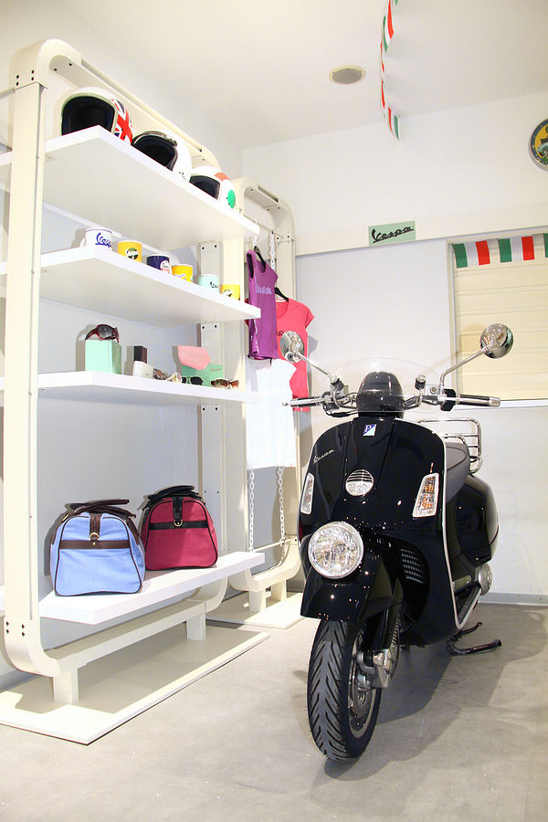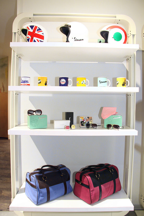 另外提到,總代理提供VESPA系列精品包括白色邊框墨鏡、白色上衣、深色領巾與義大利國旗配色安全帽,甚至是在室內靜態拍攝時所穿搭的系列精品、安全帽、馬克杯、墨鏡、手表、上衣、包包等,都像是女生喜歡把智慧型手機穿上美觀的外殼般,能夠滿足女生的多變造型需求,甚至就算是搭配名牌包也不失時尚風,因為這些精品的設計造型簡單又有質感。