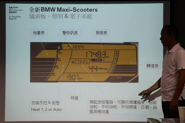 汎德協理呂文智為媒體詳細解說C600 Sport、C650 GT產品特色。