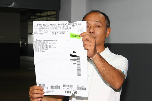 汎德協理呂文智出示BMW C600 Sport原廠文件。