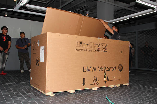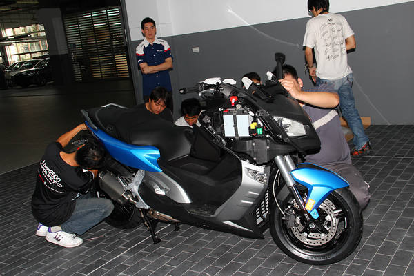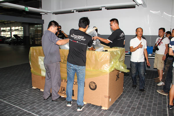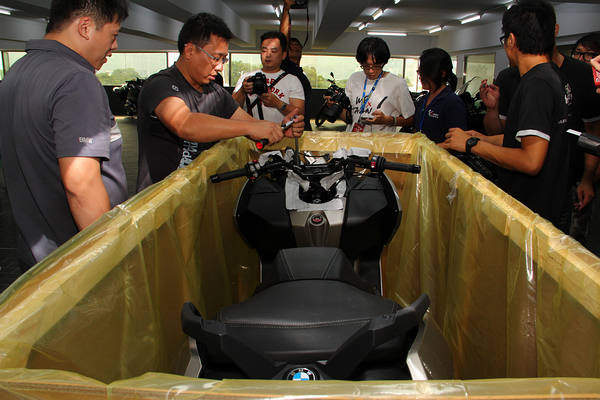 工作人員七手八腳要讓從德國空運來台的C650 GT重見天日。