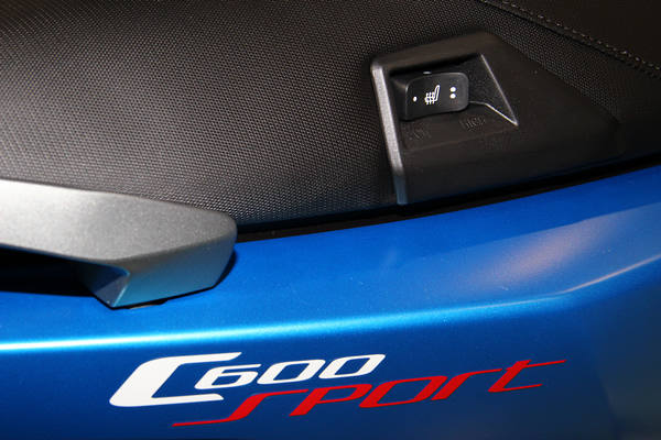C600 Sport是一款標榜擁有鮮明運動風格的機種,搭配注重符合人體工學的戰鬥騎姿,採用3段手動調整風鏡、液晶顯示多功能儀表板、世界首創BMW Flexcase行李廂置物設計 (因此可放2頂安全帽)、金屬腳踏飾板、飛旋踏板,以及前40mm倒立前叉、後鋁合金單搖臂與15吋輪圈,兼具實用性與騎乘樂趣。此外,C600 Sport共有黑、藍、銀三色可選擇。