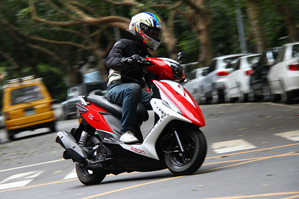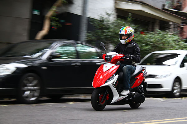而在近幾次的兩輪試駕過程中,試車組成員皆配戴此Vemar Storm帽款,塗裝為詢問度最高的Moto2現役車手Alex De Angelis圖樣,白色為底的設計中,中央輔以類似彩虹的線條,搭配兩側的生動圖案,在路上總是目光焦點;但除了炫目,那拜複合纖維材質所賜,僅1250g的帽體重量,加上設計得宜的重心分佈,整日的騎乘中對於頸部負擔極低,尤其以其定價,同級中要有相等重量的全罩帽款,的確難有對手。