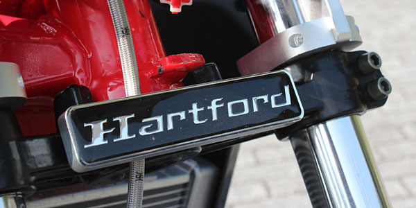 前叉上端設置品牌廠徽,為哈特佛相當熟悉的設計。