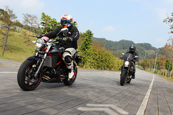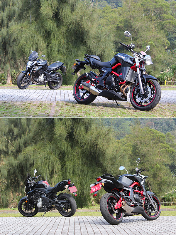 為了比較其與Kawasaki ER-6n車系之差異,特地於試車當天找來一輛2008年ER-6n車型。