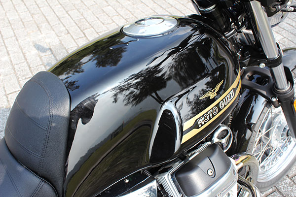 長方形的設計中帶些變化,也可說是Moto Guzzi V7 Classic一貫的油箱設計。