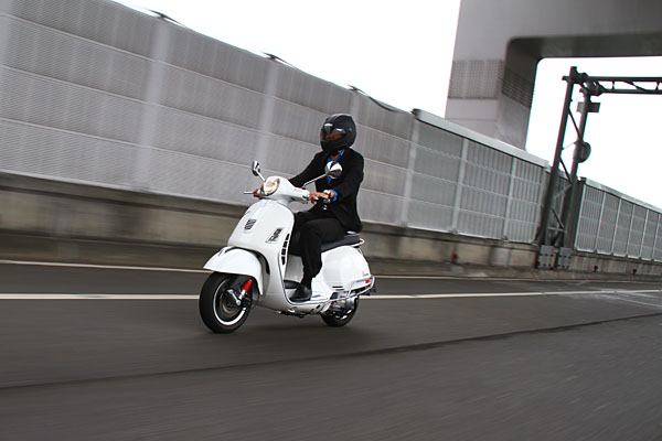 Vespa GTS 300ie Super與時常需要穿著全套西裝的Edison相配,仍是完美的對味!