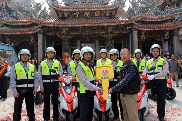這個長達八天的盛會,全程貫穿台中、彰化、雲林、嘉義四縣,共21鄉鎮市,長途跋涉三百多公里路,艱辛卻也顯示對信仰的熱忱與堅定,沿途不斷有熱情信眾加入,將遶境隊伍蔓延成長長的人龍,Z1街頭正義小霸王秉持著服務社會,實踐正義的理念,當然就不能錯過此次盛會,SYM三陽機車慷慨解囊贊助20台Z1組成大甲媽祖機車團,這些機車團的工作就是指揮交通,維護隊伍的安全,沿途服務遶境的辛苦信眾,為遶境隊伍的安全與順暢進行維護與把關。夜間隊伍行進的安全交給V型LED位置燈及55W大燈吧,亮度增加,安全有保障。在為數驚人的車輛中,休息時要如何保持兩側後照鏡維持自己最習慣的視角不因比鄰而停造成移位?Z1獨家專利可折後視鏡馬上就可派上用場,保持最習慣的角度看世界,不被外力所干涉,自己的角度自己掌握!遶境是一項體力與毅力的挑戰,沿途補充水分是很重要的,Z1的前置物大空間可放置700c.c.飲料,補充水份最方便。