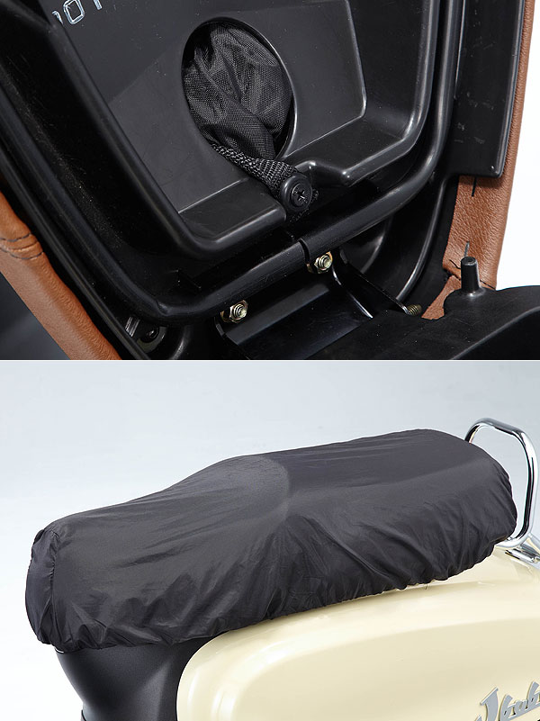 座墊底下同時設計有收納式的座墊防塵套,為愛車增添多一分保護。
