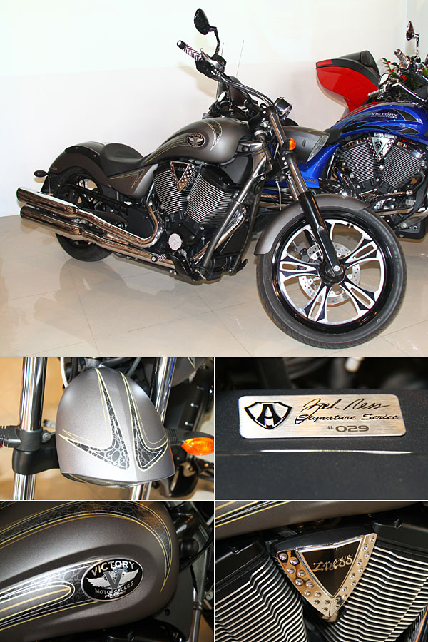 除了限量因素,Arlen Ness與Cory Ness於4月連袂造訪台灣勝利重機台北旗艦店,也是讓此車系迅速銷售的原因,在高人氣的教父級人士登台,為勝利重機做了最佳的品牌造勢活動,更是讓此品牌在台知名度迅速提升的關鍵。
