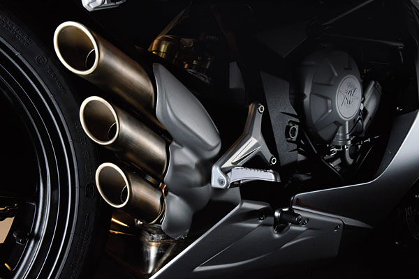 承襲F3 675的惹火造型,F3 800最大的差異,莫過於是整流罩下的那三缸引擎。維持著直列三缸的配置,缸徑也為79.0mm,但衝程則從F3 675拉長了8.4mm,來到54.3mm的水準,使得排氣量一舉提升至798c.c.。經過如此的擴心手術,搭配上全新設定的噴射裝置,讓此雙凸輪軸每缸四氣門的高效能引擎,可輸出148hp/13000rpm最大馬力,較F3 675足足提升20hp之多;峰值扭力也提升至88Nm/10600rpm,也較F3 675的71Nm明顯進化;搭配上與F3 675如出一轍的車身重量,重量馬力比為1.17kg/hp,一匹馬力承擔的重量較F3 675少了13.5%之多,透過終傳比的修改,使得F3 800可達到269km/h極速表現。