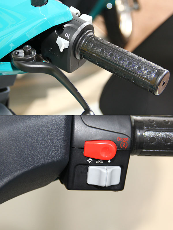 定速巡航裝置開關位於左把手前側,Boost加速器開官則位於右把手上。