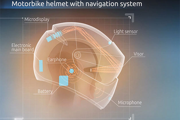 這解決方案要從俄羅斯說起,或許你沒有到過俄羅斯,但從網路上許多影片與訊息的分享,你可以知道這當地交通的混亂情形,對此,一群志同道合的發明家發起了LiveMap企劃,他們要把安全帽與衛星導航系統結合,讓你只要用嘴巴下指令,你就可以從安全帽裡的投射畫面,獲得一切導航訊息。