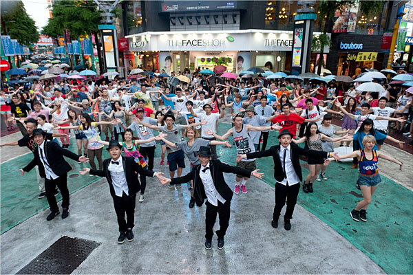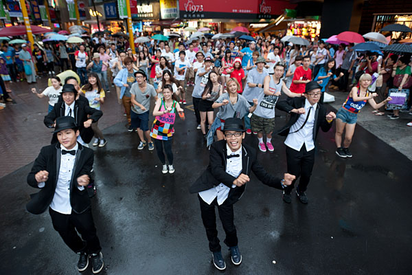 原本人來人往的西門町廣場,突然音樂大作,接著有近百位年輕人隨之起舞,音樂停止後這些舞者又像是正常的路人各自走散,因為跳舞的人數眾多,加上假日人潮,有不少路人因為這情景而停下腳步圍觀。