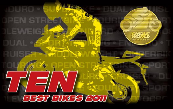 每年7、8月之際,北美知名重型機車媒體「Cycle World」的年度10大風雲車款評選就會公佈結果,回顧前兩年在該評選中名列前茅的車款,也反映出2009至2010年間,全球摩托車壇從低靡狀態逐漸復紓的情況;去年評選過程中,評審平均意見表示,由於造車技術提升,要從去年的500輛新車中挑選出10個級距的風雲車,決議將審核標準提升,並且首度透過Cycle World網站將10大風雲車的實測影片輪流在網站中展演;而在去年包辦風雲車一半席次的日本車系,在今年似乎又被歐洲品牌搶回一些顏面,考量到評選結果究竟如何,就此揭曉。