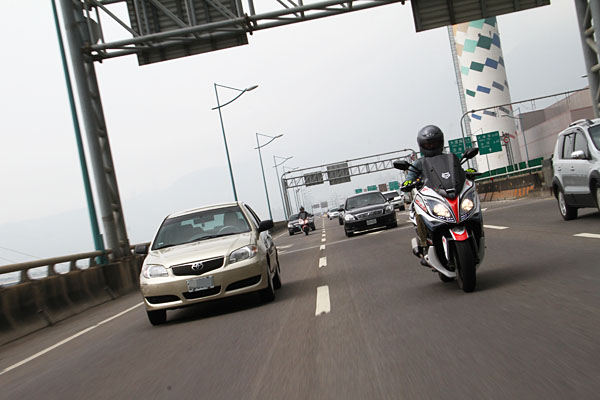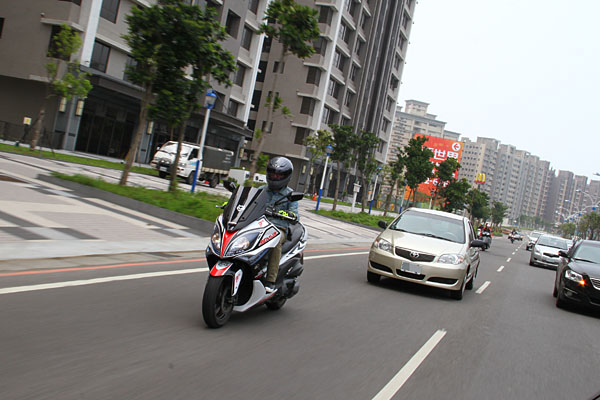 相較於一般白牌速克達,此300-400c.c.級距的中型速克達,於機動性面差異不大,但可使用的路權卻便利許多。