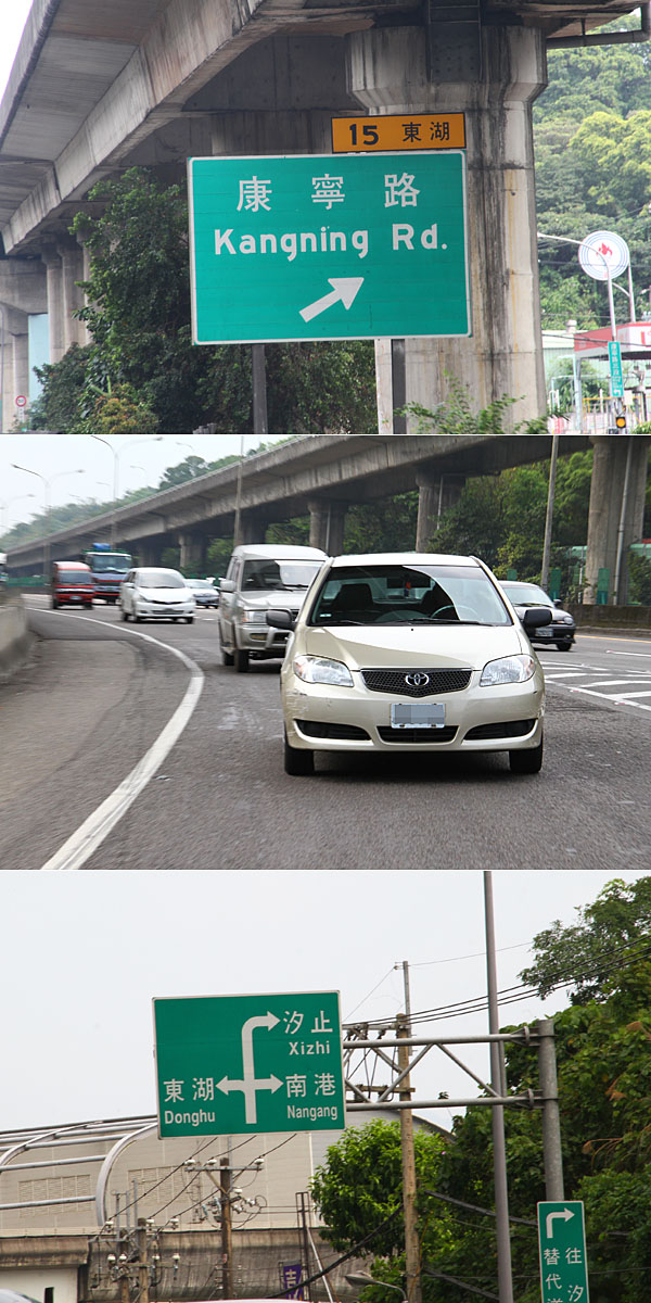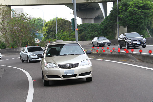 Vios則從環河快速道路轉向重慶北路,切上國道一號重慶北路閘道入口,往北行駛。