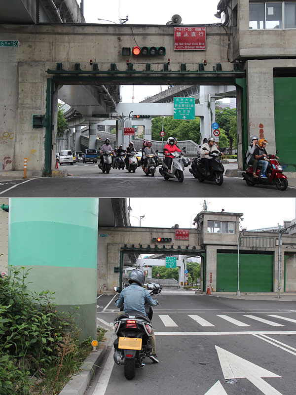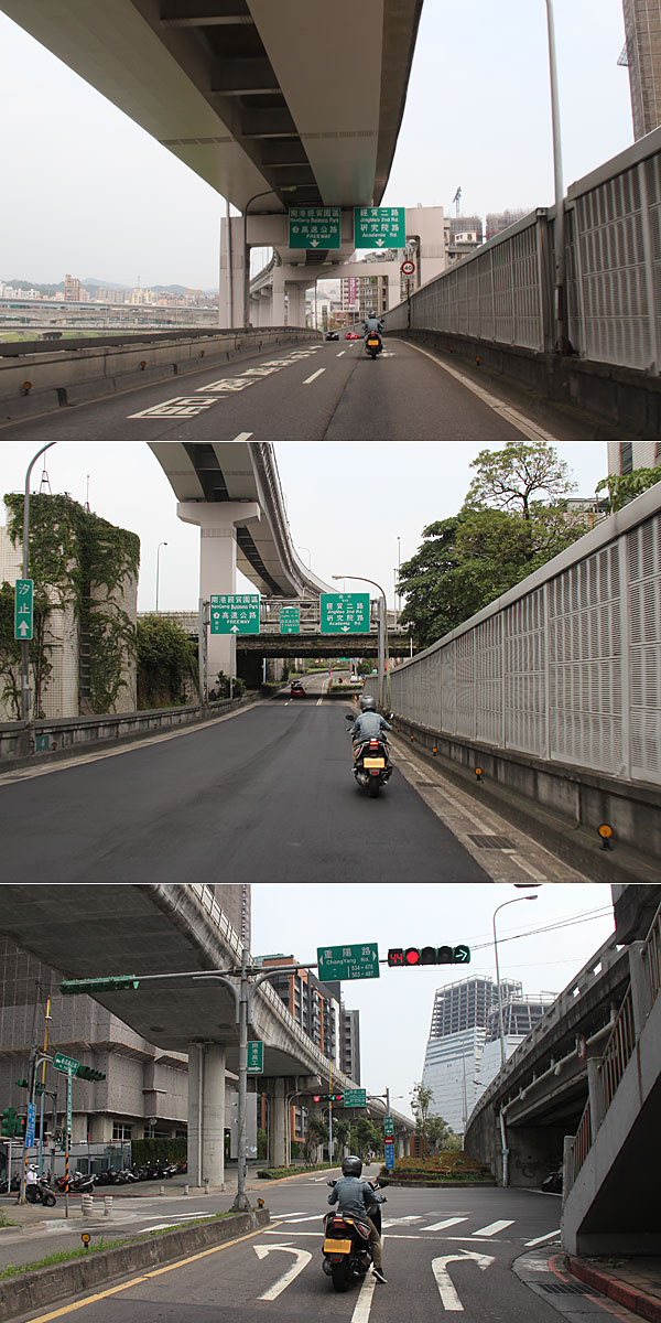 從洲美快速道路下後,機車接環河快速道路繼續往南。