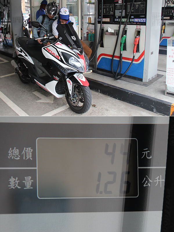 機車加油後耗費1.26L油量。