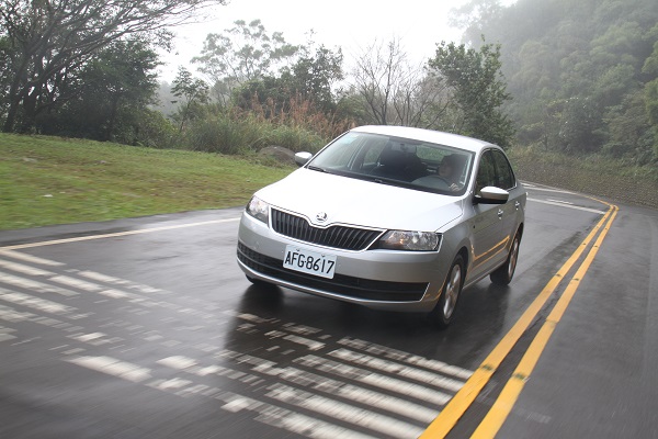 本次試車採訪邀請了知名女車手沈慧蘭小姐(以下稱殺手蘭),跑了一趟五指山做山道的體驗,由於殺手蘭以前任職汽車媒體編輯時,就寫了一連串台灣山道攻略單元,加上平常也都有參加拉力賽,對於山道有一定程度的熟悉感,在一連串的蜿蜒山路中,殺手蘭對於Rapid的轉向魅力很有感覺:車身晃動程度不會太大,偏向穩定但是硬中帶Q,排入S檔引擎監理系統在減速時也會提高轉速,以備加速維持靈敏動力輸出之用,加速也會延遲換檔時間,整體聲浪與平常D檔行駛差異很大,活脫脫像是換了一個靈魂上身,只可惜原廠配胎過於保守,可能是因為油耗設定,如果購入後,建議可以升級到17吋都很適合,抓地表現會更好!再加速的扭力表現也很好,山道動力充沛,方向盤轉向手感也很穩定,是一輛很有駕駛樂趣的四門房車!
