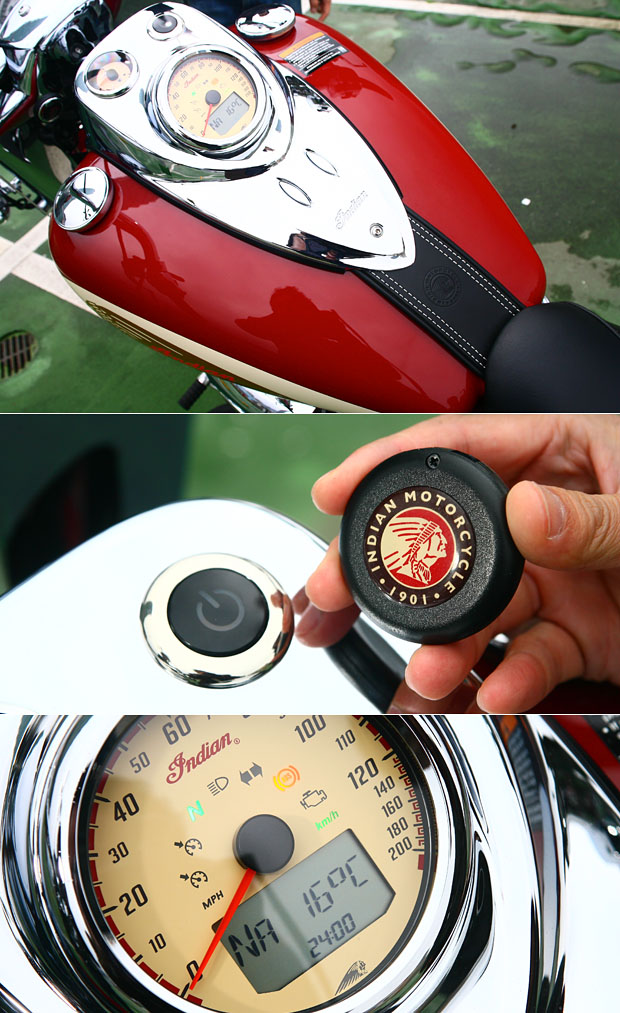 油箱上除了具備按鍵式啟動鈕以外,時速表中央的旅程電腦,也提供了如溫度、轉速、檔位與功能顯示。