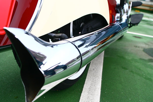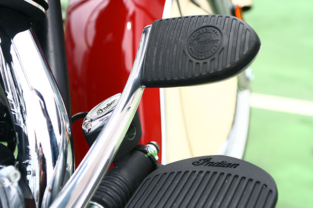 後煞車踏板、油壺與腳踏墊等處皆充滿Indian字樣,細節處同樣精彩。