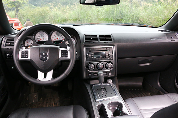 內裝相較於其他兩車,Challenger所欲呈現的是沉穩低調的經典意涵,硬質塑料很合理的被大量採用,皮革質感也僅是臺灣國產車水準而已,不過因著黑色系視覺鋪陳,總體觀感還算水準之上,乘坐空間當然也十足闊綽,唯一可惜之處就是視線頗為幽閉,不利於街頭鑽車換道或倒車停車。