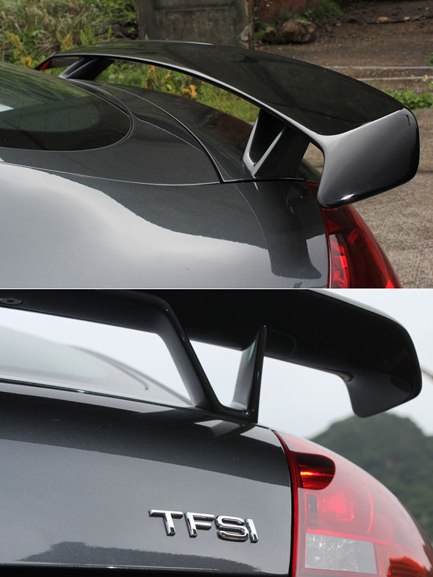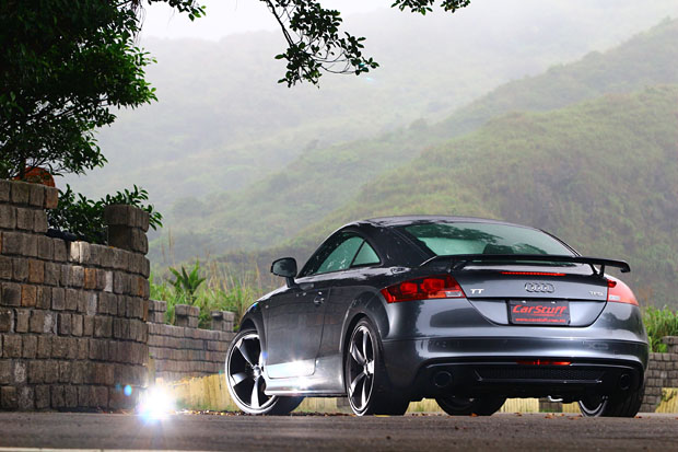 車尾除了清楚說明動力特性的「TFSI」銘牌以外,最搶眼的莫過於是與TT RS相同的固定式高光澤黑色尾翼。