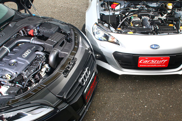 如此相較,BRZ是較用心的。雖然也是開發出了Toyota 86與Scion FR-S三兄弟,但專為此車系獨立開發、可放置水平對臥引擎,同時是前置引擎後輪驅動底盤。或許這86的名號,讓人聯想起動漫主角的人氣,但根據原廠內部透露,86想傳承的,是更古老、更經典的2000GT,如此一來,同步催生的BRZ,似乎更具誠意。從車身格局出發,有著低重心的水平對臥引擎、有著後輪驅動的轉向過度基礎,BRZ給了多數人嚮往的操控體質,但在習慣了FF設定的多數消費者們,BRZ提供了很棒的夢想,但也提供了相對的操駕實力門檻,你能從BRZ身上獲得多少樂趣,自然就要掂掂自己斤兩了,而這點,TT倒比較沒有這種問題,所以也可以從道路上發現,TT有著為數不少的女性駕駛,而BRZ與86兄弟們,是以男性為主了。