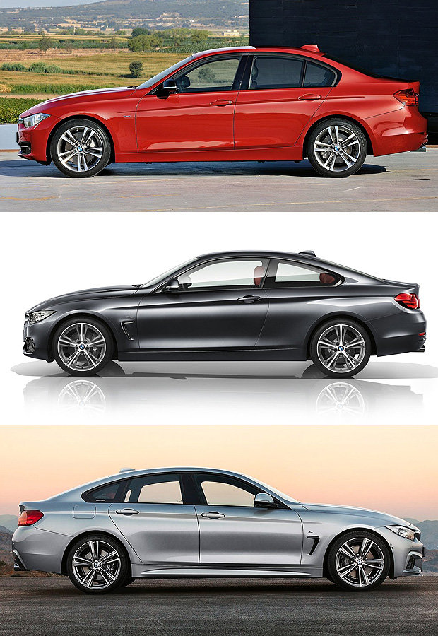 就這個軸距2810mm的中小型級距平臺中,BMW洋洋灑灑地規劃出6種不同車系,雖然車身尺碼相近,卻透過車身布局的不同,以及設定的差異,創造不同的產品規劃。3 Series維持了過去傳統房車與旅行車的設定,以留住較為保守、喜愛3廂4門房車的消費族群。將雙門Coupé 從3 Series中分離而獨立的4 Series則是走向動感的雙門Coupé方向。然而,為了滿足於想同時擁有Coupé線條又期望享受4門房車便利性的消費者,BMW也在4 Series中衍生出4 Series Gran Coupé進軍中小型4門Coupé市場。